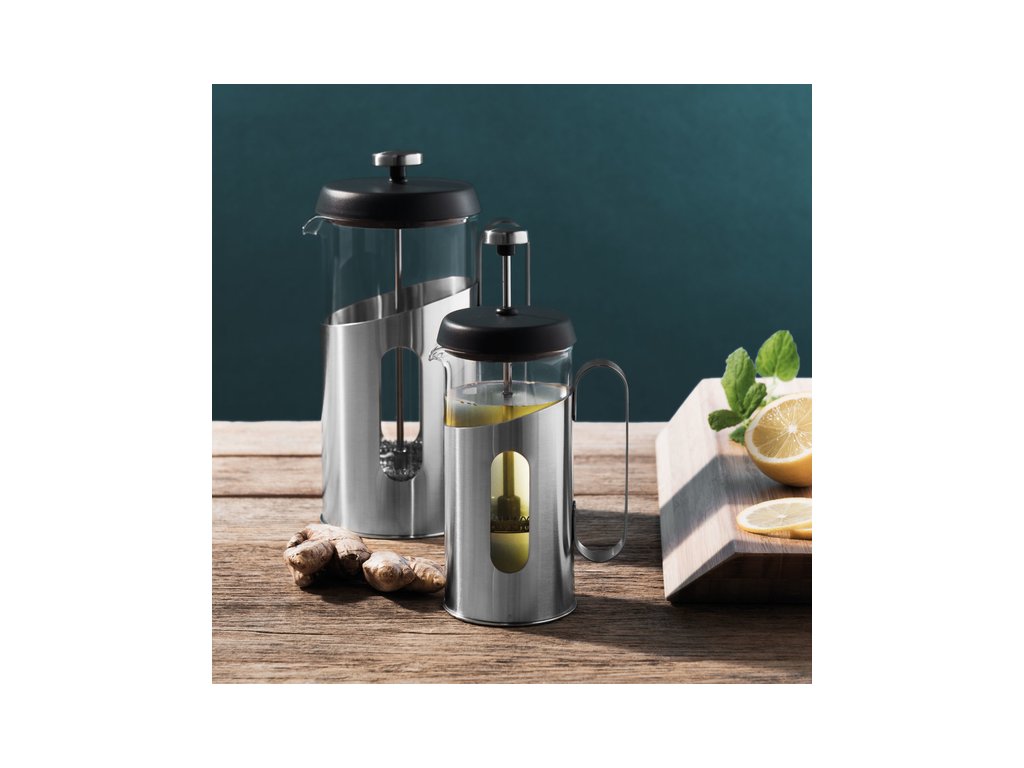 Už od roku 1852 sa začal používať French press na jednoduchú prípravu kávy či čaju, s ktorým dosiahnete výraznú a plnú chuť. Skladá sa zo sklenenej nádoby s kovovým držiakom, kovového piestu, na ktorom je umiestnený filter a plastového vrchnáku.